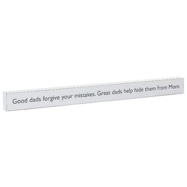 - On sign: Good dads forgive your mistakes. Great dads help hide them from mom.